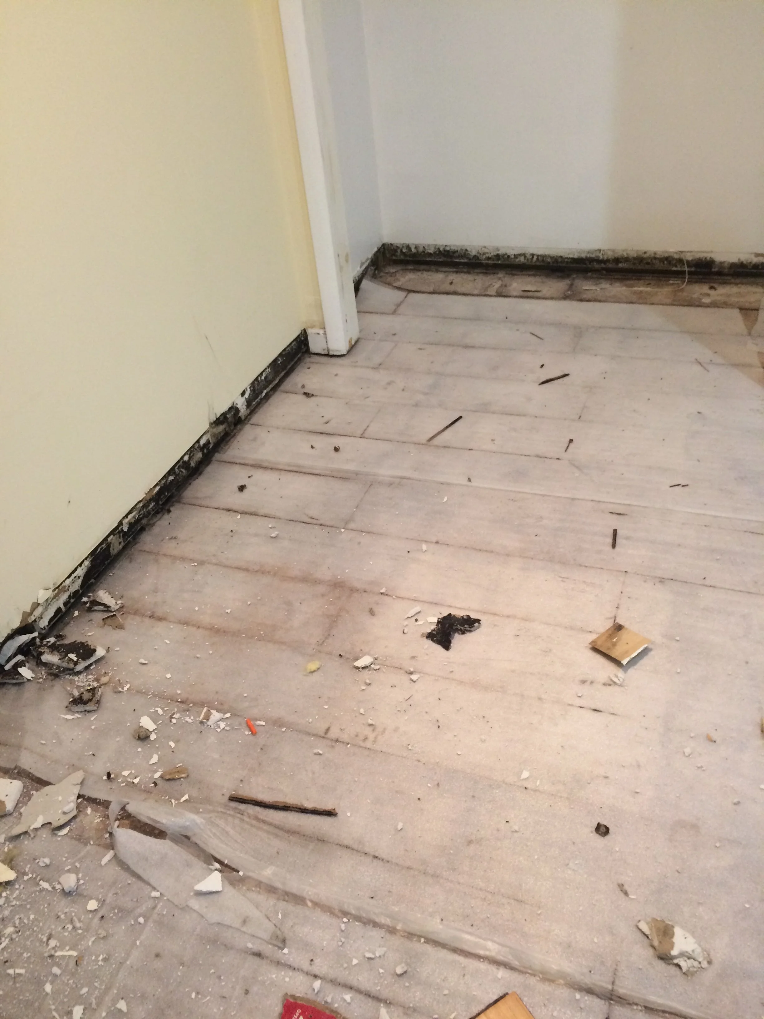 Includes: paint job, new backsplash; counter, cabinet, stove, sink, and refrigerator installation.